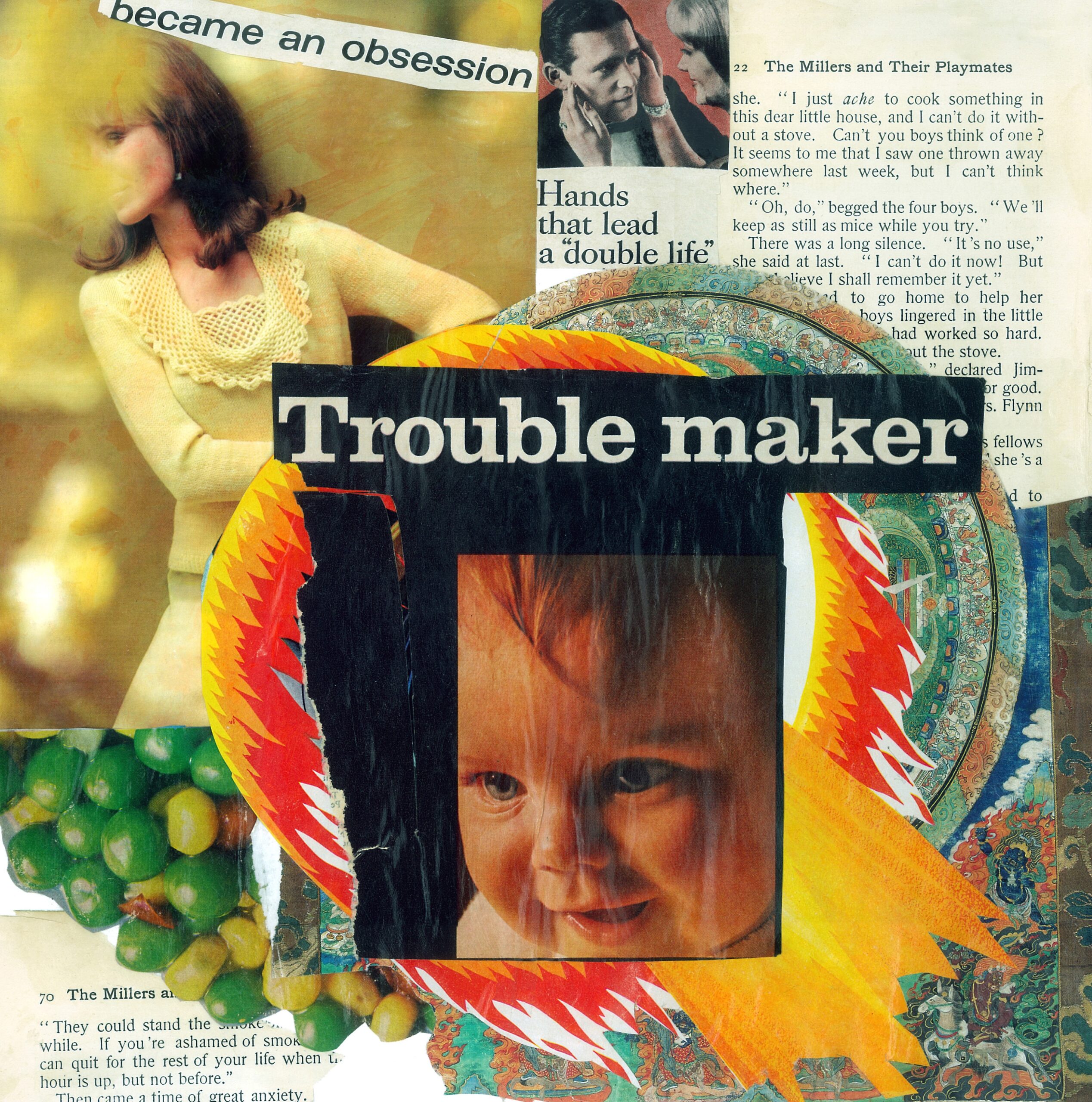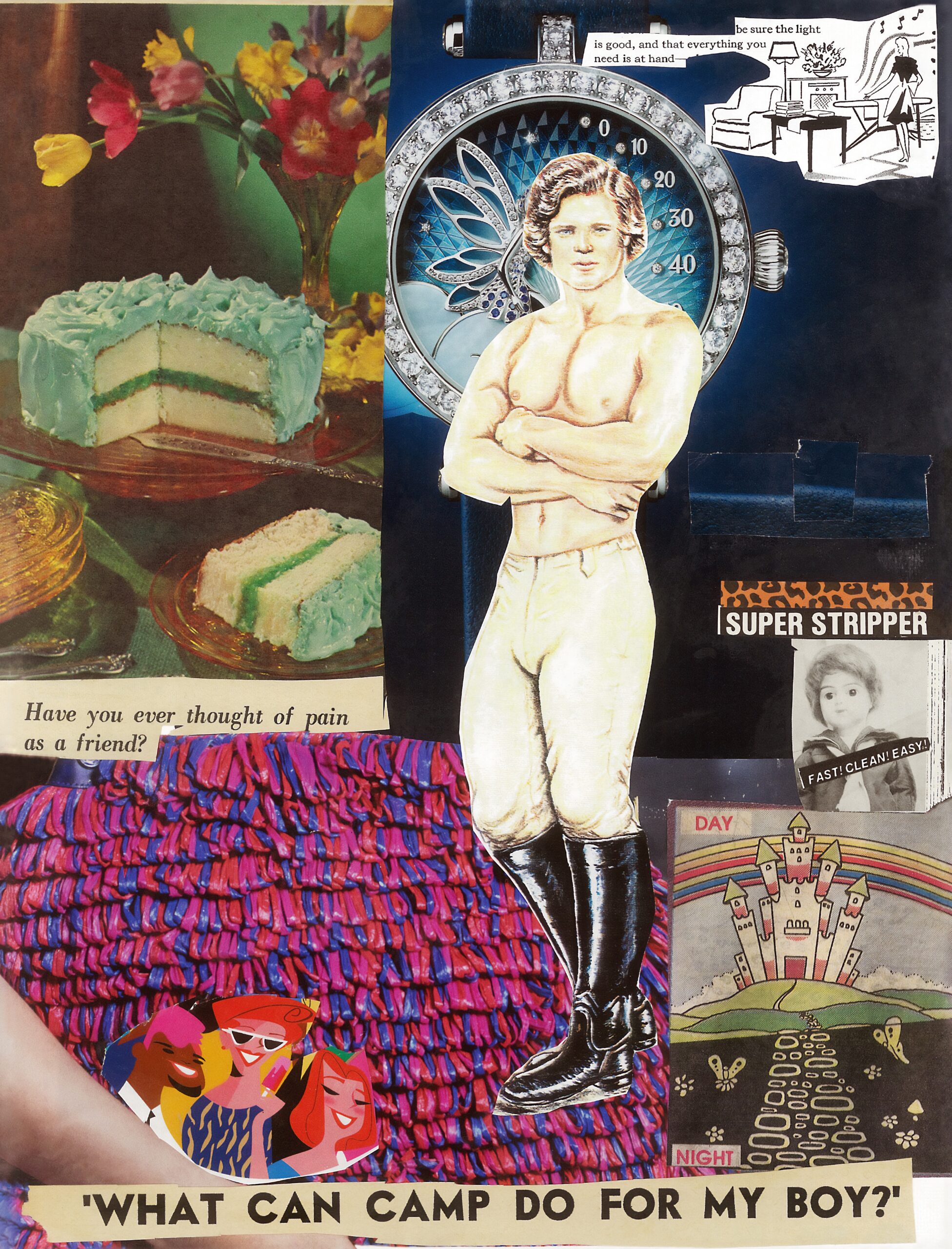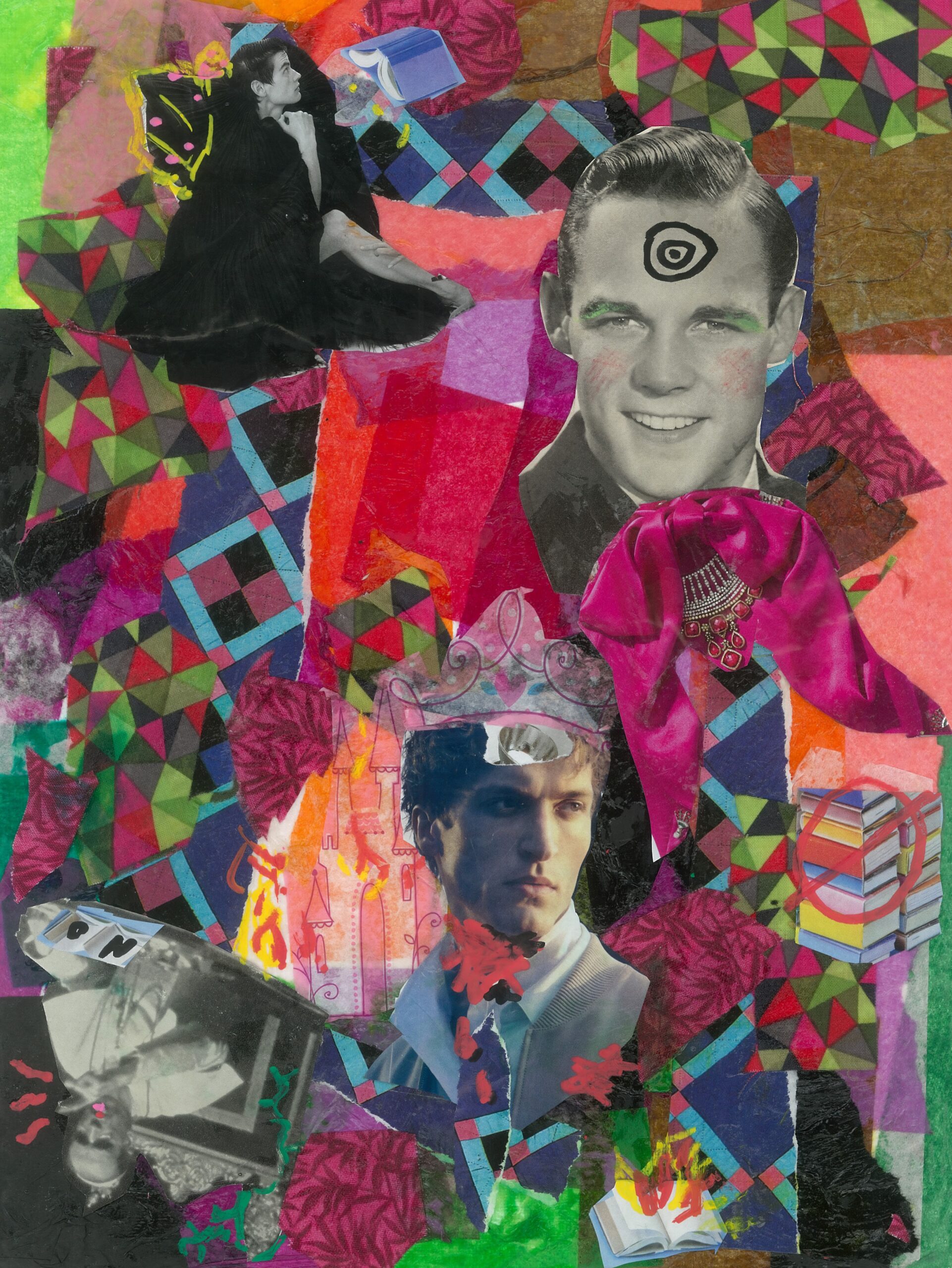 Collages Vintage and contemporary magazines, comic books, paper dolls, art paper, and other ephemera combine to comment on faith, gender roles, respectability politics, and sensuality. What Can Camp Do for My Boy? Princes of the Church King of Cups Trouble Maker Under His Eye Stigmata